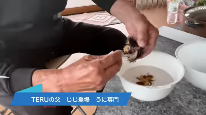 ウニの下ごしらえをしてくれています。